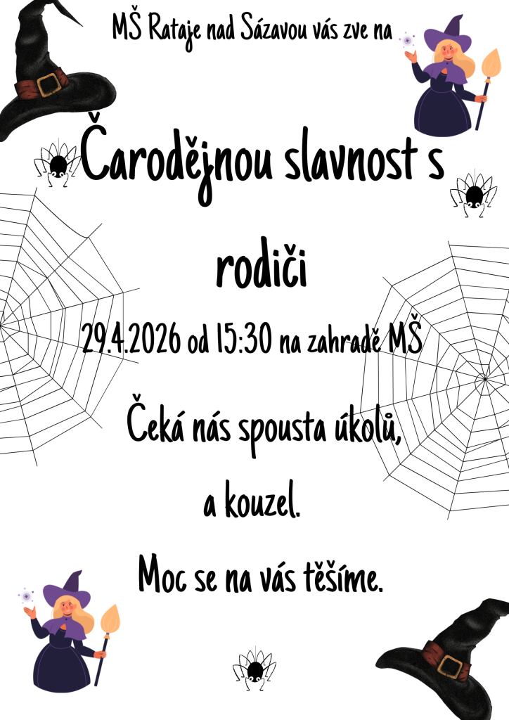 Srdečně vás zveme na čarodějné odpoledne na naší zahradě. Přijďte s námi vykouzlit úsměv, zažít trochu kouzelné atmosféry a užít si společné chvíle. Těšíme se na vás!