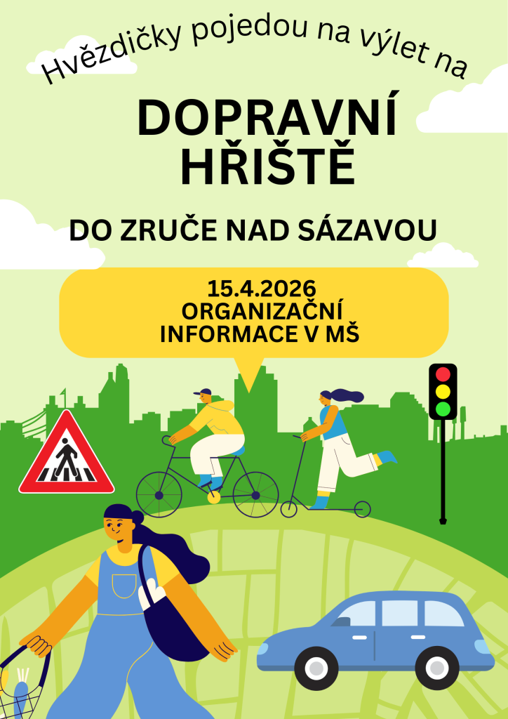 Ve středu 15.4. pojede třída Hvězdiček na dopravní hřiště do Zruče nad Sázavou. Organizační informace v MŠ.